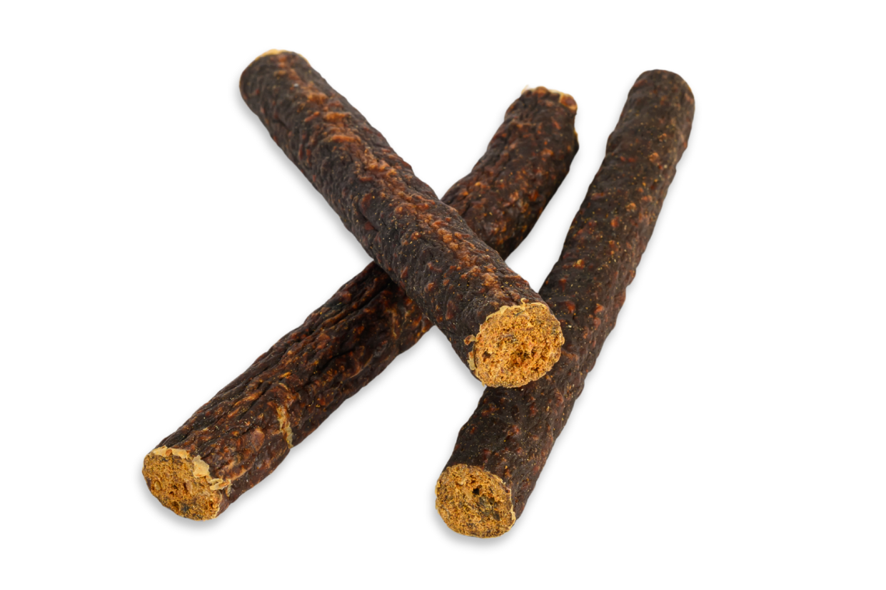 The Jerky-Wrapped Bully combines 100% beef jerky (gullet) wrapped around an all-natural beef pizzle, delivering a flavorful and long-lasting chewing experience. The savory beef flavor and crunchy texture make it highly appealing to dogs, promoting healthy chewing habits and supporting dental health by naturally cleaning teeth and gums.