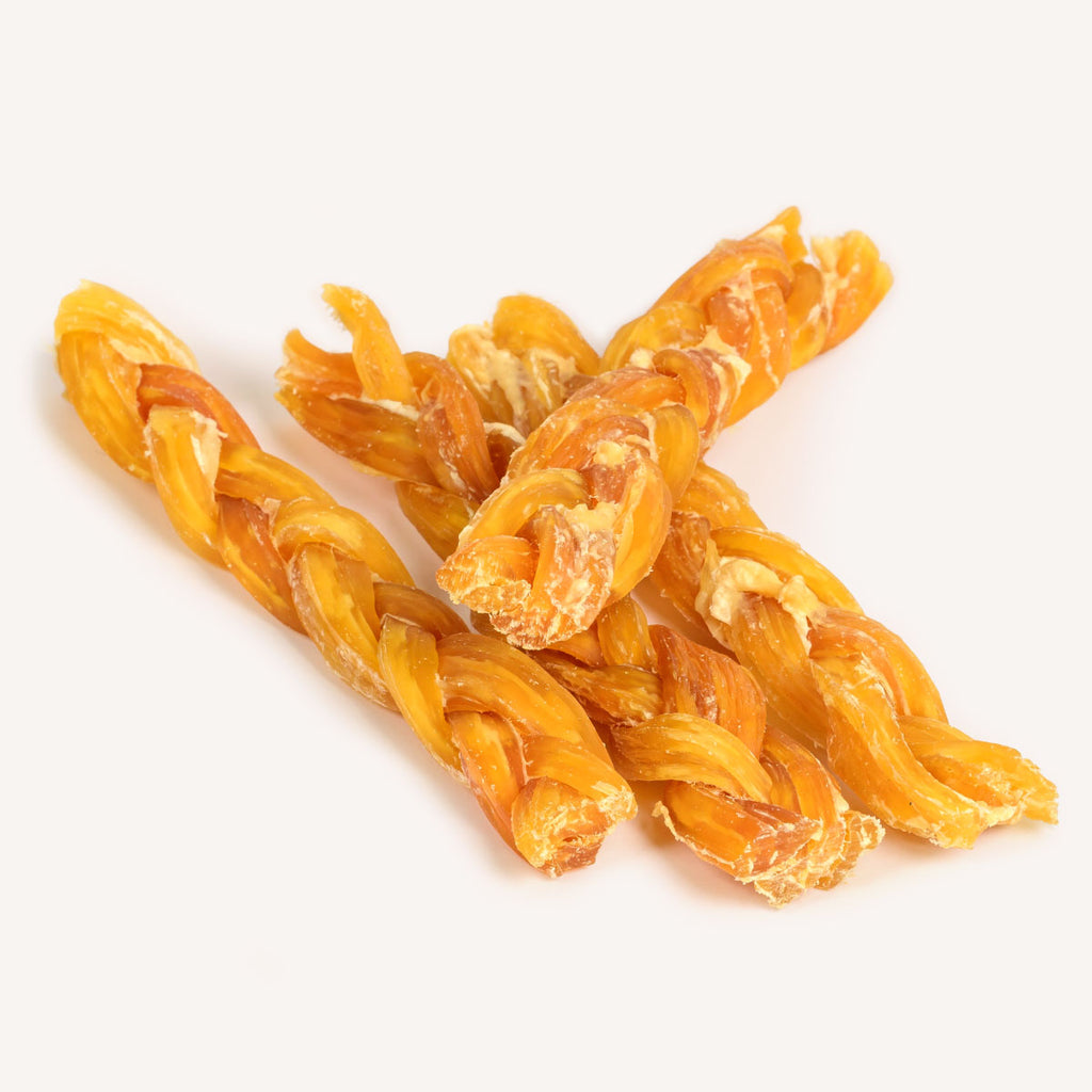 Made of our 100% Premium Quality Beef Cervical, this quality treat is rich in protein and easy to digest. Our Braided Backstrap Stick is sourced from free-range beef with NO additives, NO hormones, and NO antibiotics. This treat is extra dense and is perfect for the power chewers.