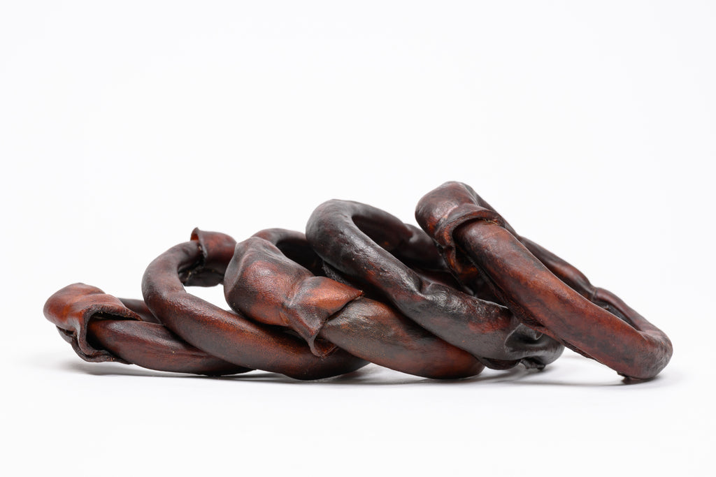 Hand crafted into a ring shape. Firm, durable chew will slowly soften as dog continues to chew