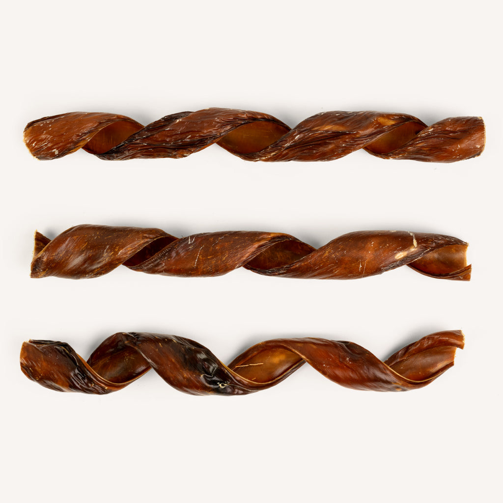The jerky (Gullet) spring-like shape will keep your dog engaged and mentally stimulated while providing drool-worthy beef flavors with every twist and turn. We hand bake to ensure the crunchiest experience that all dogs love! A great alternative to curly bully sticks for dogs who prefer a softer chew while maintaining the high protein benefits.